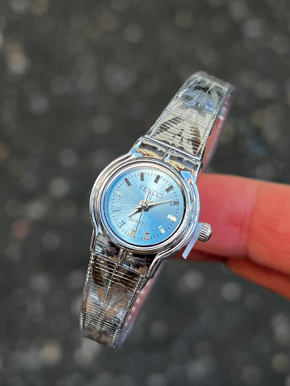 ساعت النگویی زنانه فنچی نقرهای صفحه آبی تیفانی رنگ ثابت